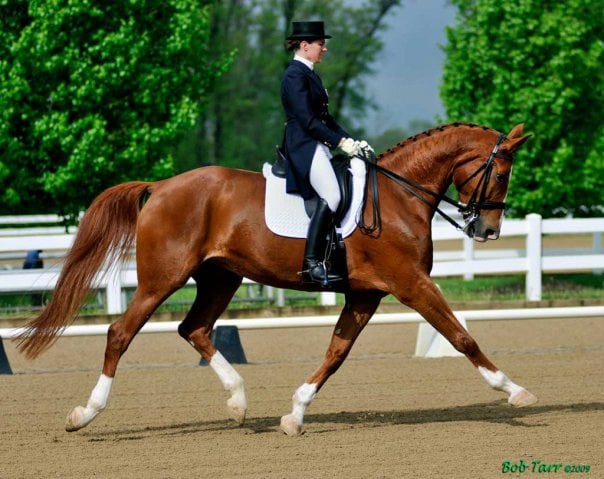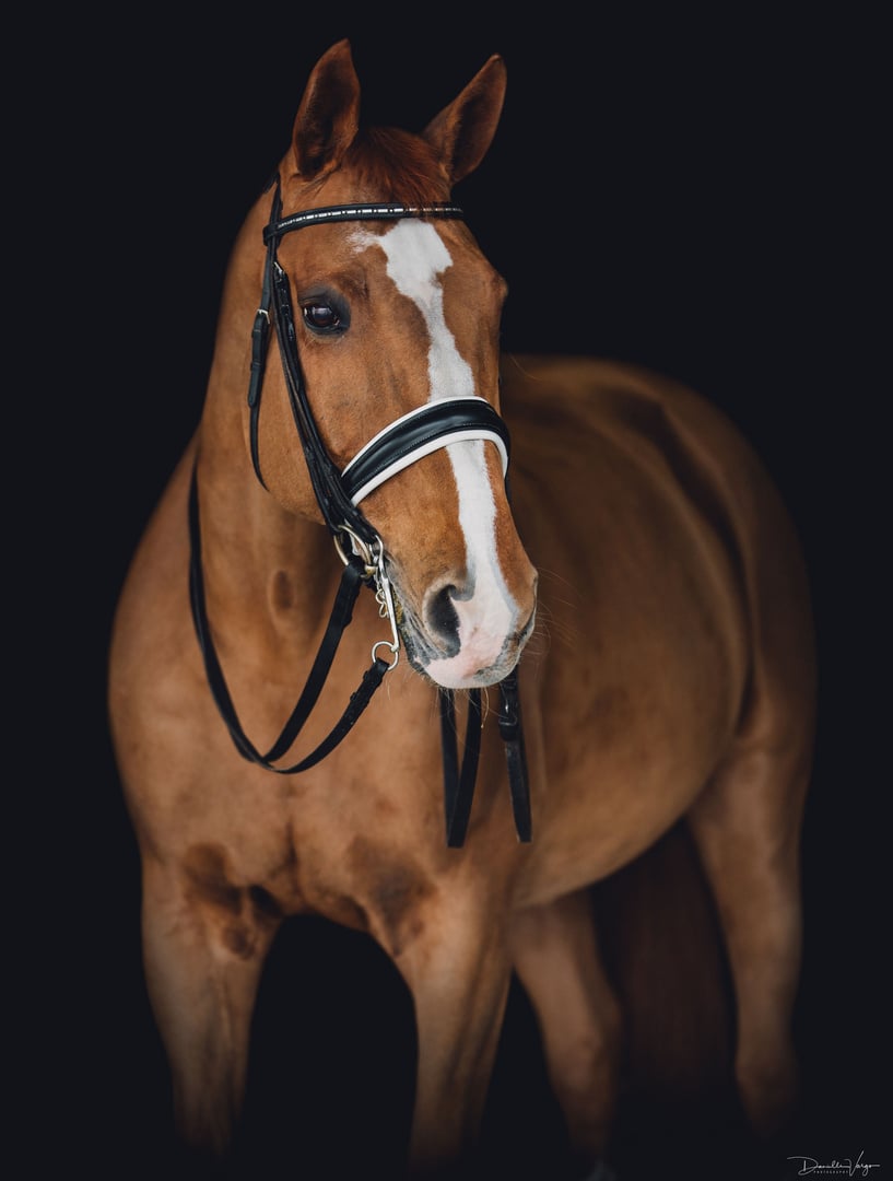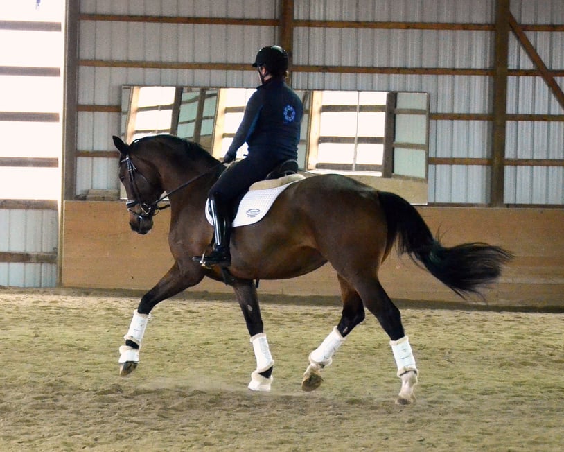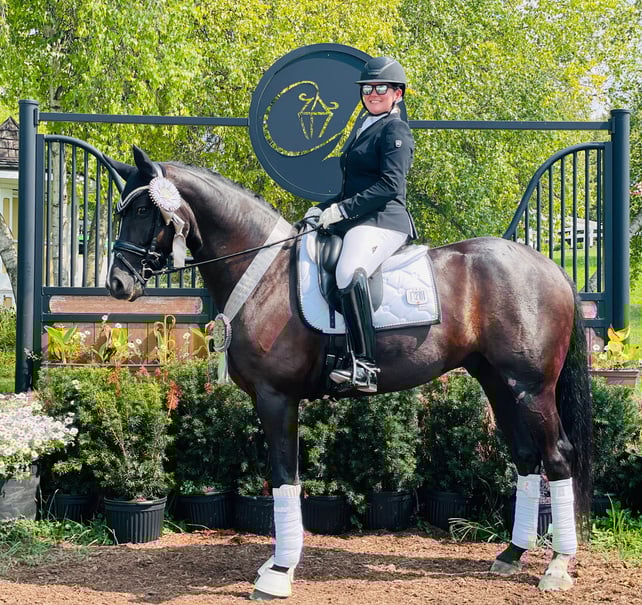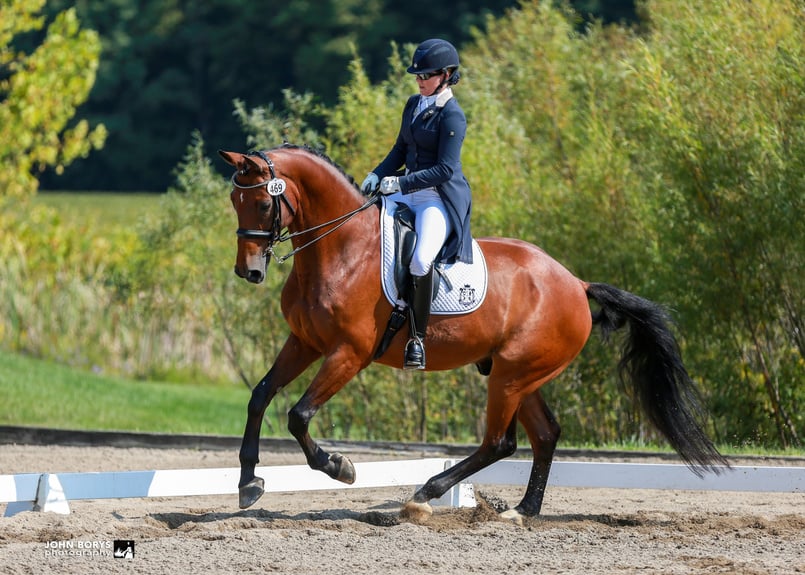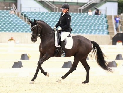 "Gabelle" (Guarantor/Wendelin) was bred, raised, and trained to Grand Prix level by Brittany. She successfully competed in Regional Championships, International CDI competition, and NAJYRC. Brittany and Gabelle “grew up” together - learning from each other, and sharing a special bond that went beyond riding. Gabelle, also known as “The Queen”, was laid to rest in November of 2022. Her impact on Brittany’s development - and place in Brittany’s heart - will always remain.